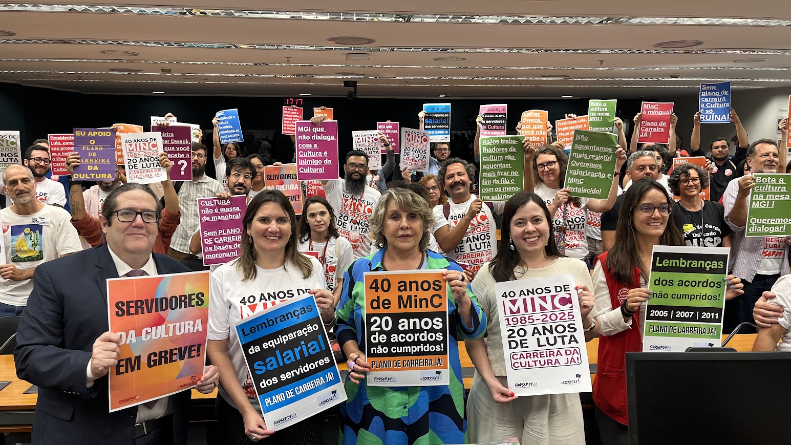 A audiência ocorreu em um momento de mobilização intensa da categoria, que está em greve desde o dia 29 de abril. Os trabalhadores cobram o cumprimento de acordos firmados há mais de duas décadas, que previam a criação de um plano de carreira específico para o setor cultural.