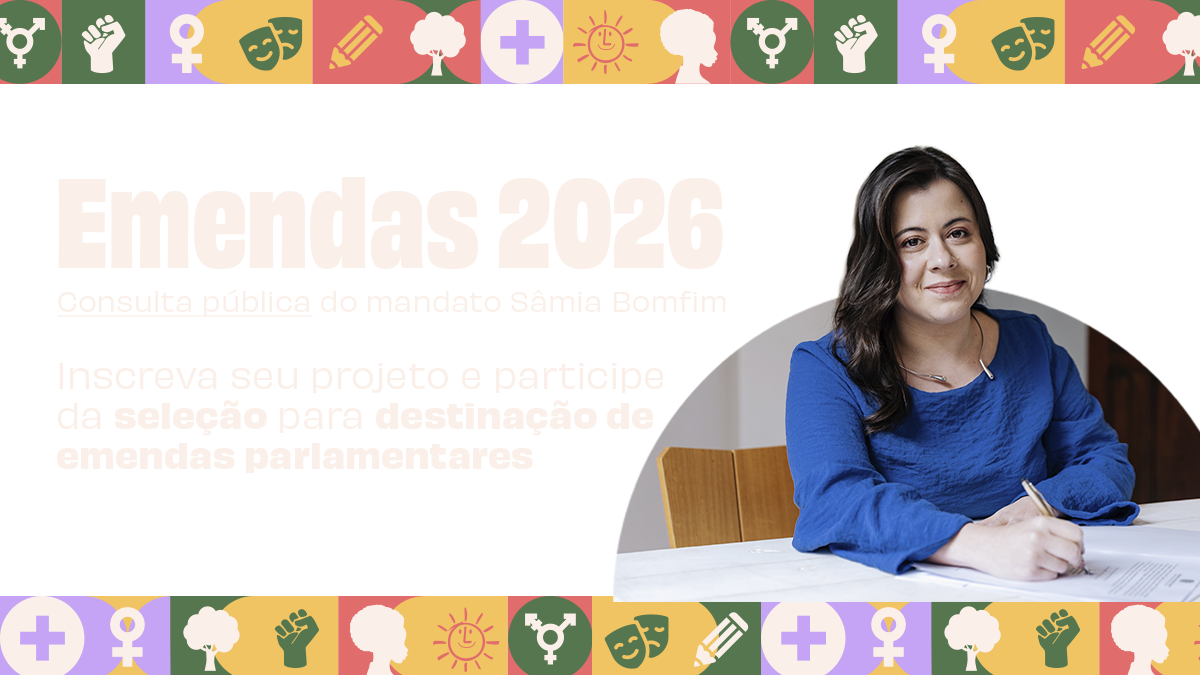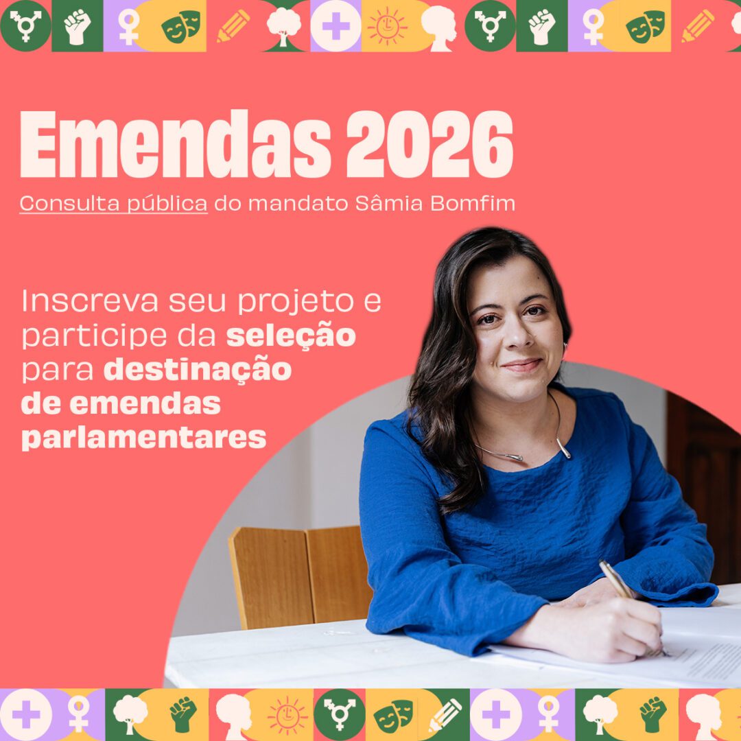Mais uma vez o Mandato da Deputada Federal Sâmia Bomfim abre inscrições para a consulta pública e recebimento de propostas para nossas emendas parlamentares individuais.
